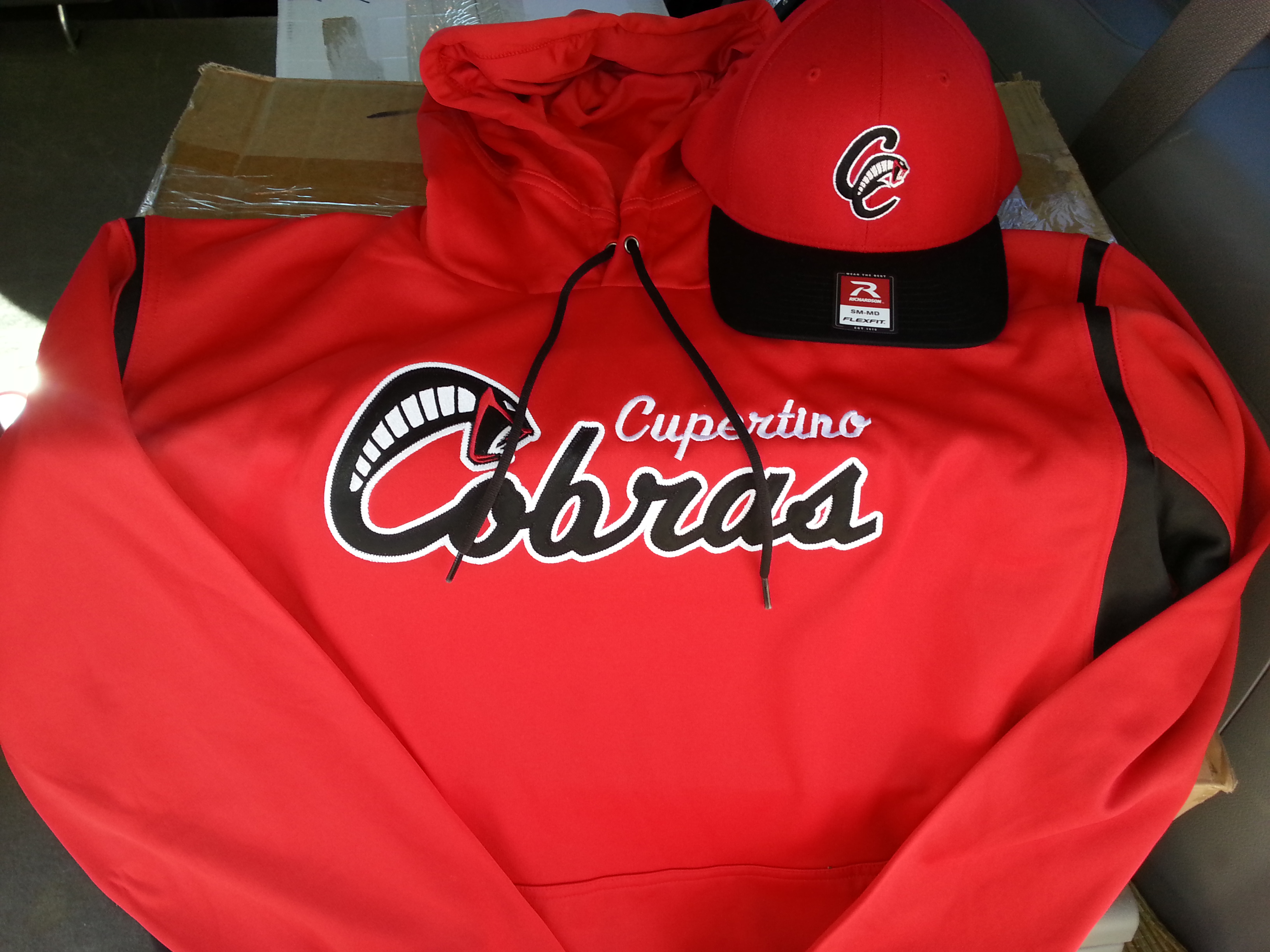 Here is one of our most recent projects for the Cupertino Cobras traveling club baseball team, featuring our custom embroidery and tackle twill on a Sport-Tek performance hoodie. We also fulfilled an order for direct embroidery on a Richardson hat for the team!