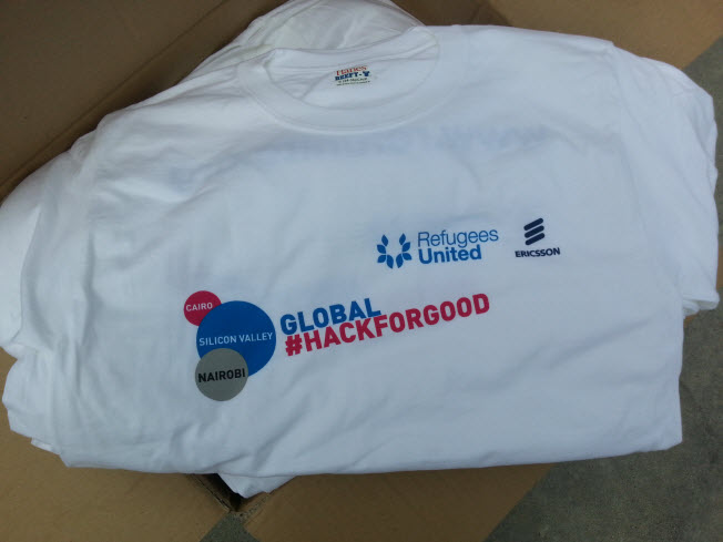Below is a recent project we have completed for Ericsson, a world leader in innovation to empower people, business and society. Just like Ericsson, we empower people who need a custom screen printing for any event or purpose. We are excited to support a great cause like the Global Hack for Good by Refugees United & Ericsson!